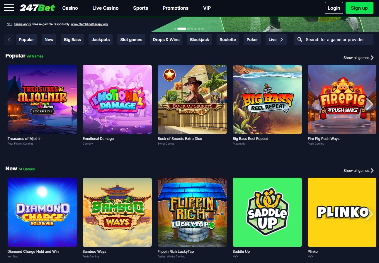 One of 247Bet’s strongest selling points is its massive game library. With over 2,800 games available, players are truly spoiled for choice.