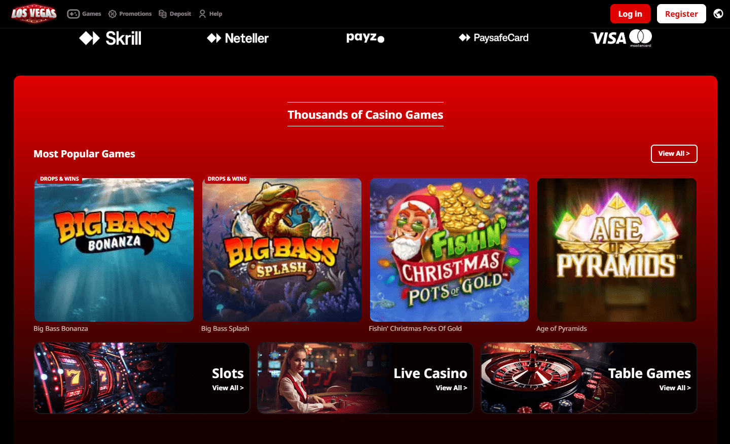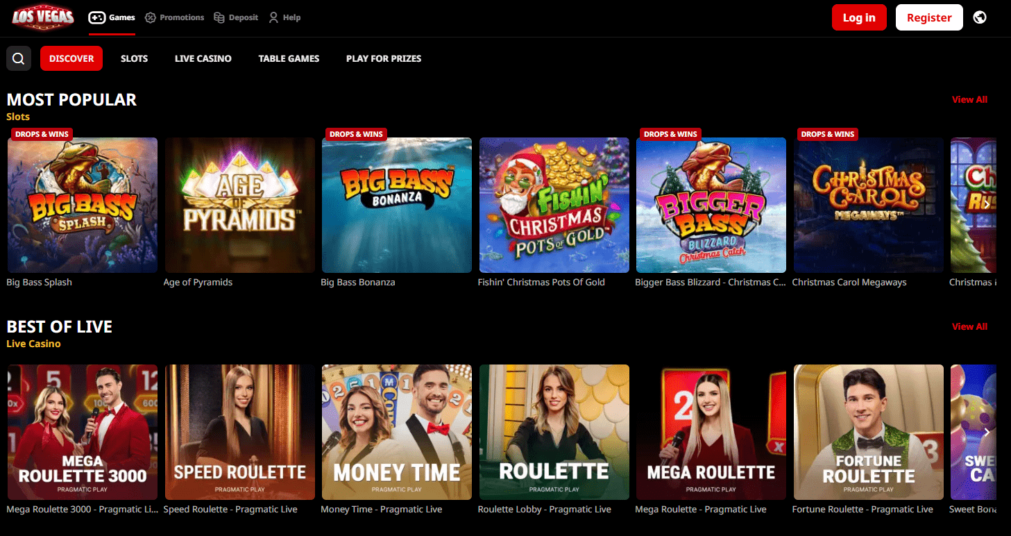 Los Vegas boasts a wide game library with slots, classic table games, and live dealer titles. The casino includes popular categories such as: