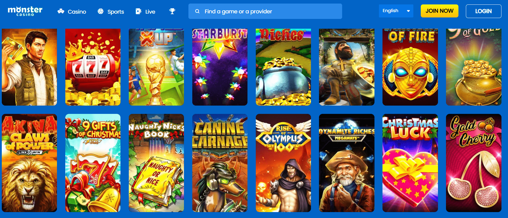 Monster Casino offers a wide and attractive mix of slots, live casino games, table games, and sportsbook — backed by dual licensing (UKGC + MGA) and a large game portfolio, making it appear as a full-featured, credible online casino.
