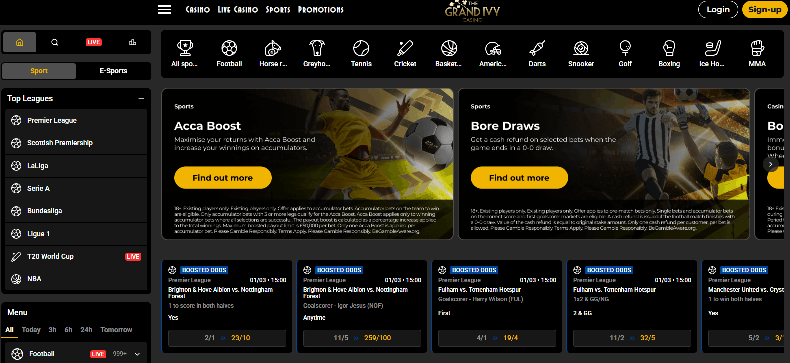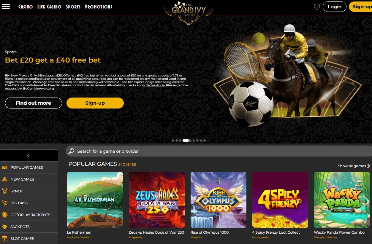 GrandIvy Sport combines sportsbook betting with a casino section.